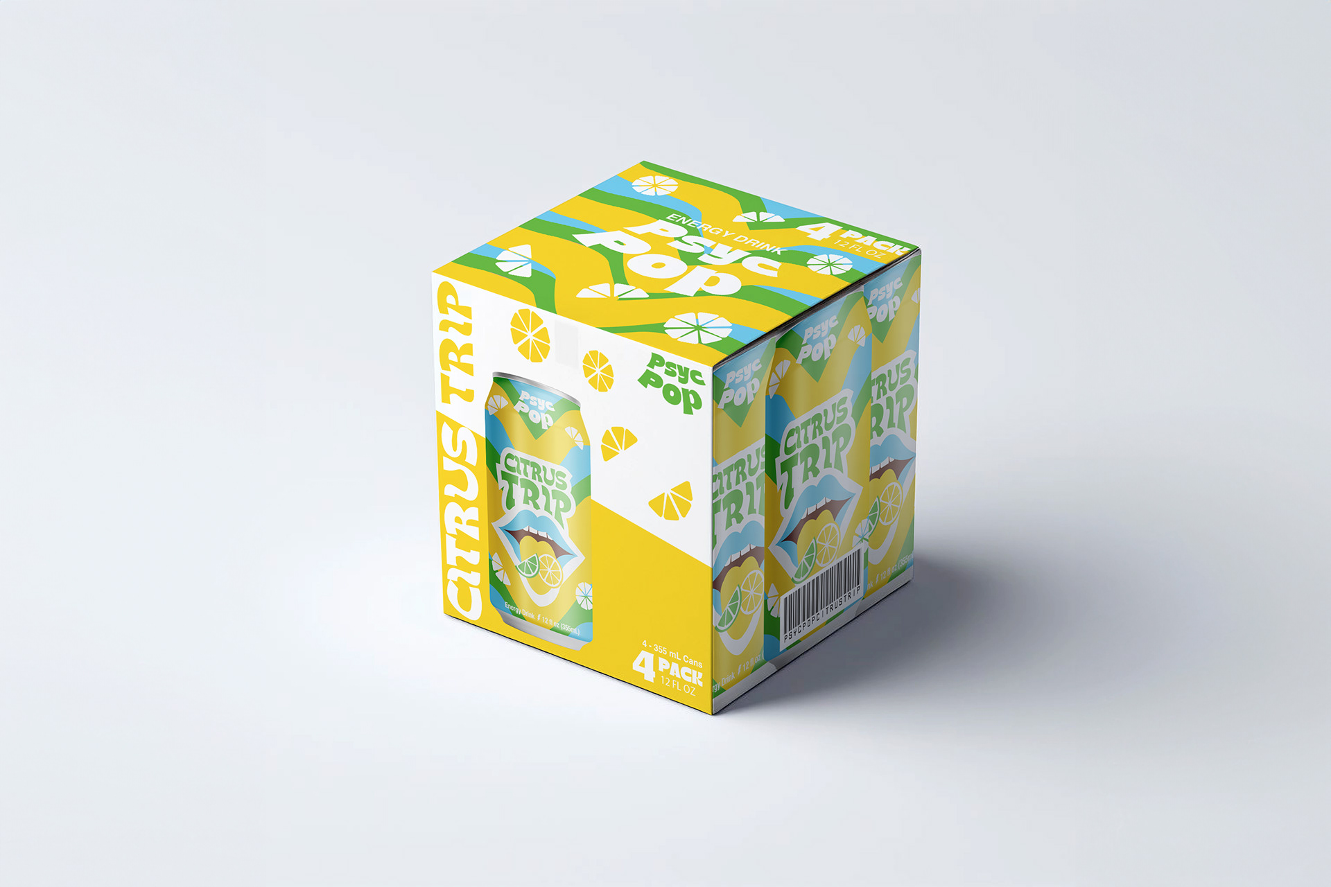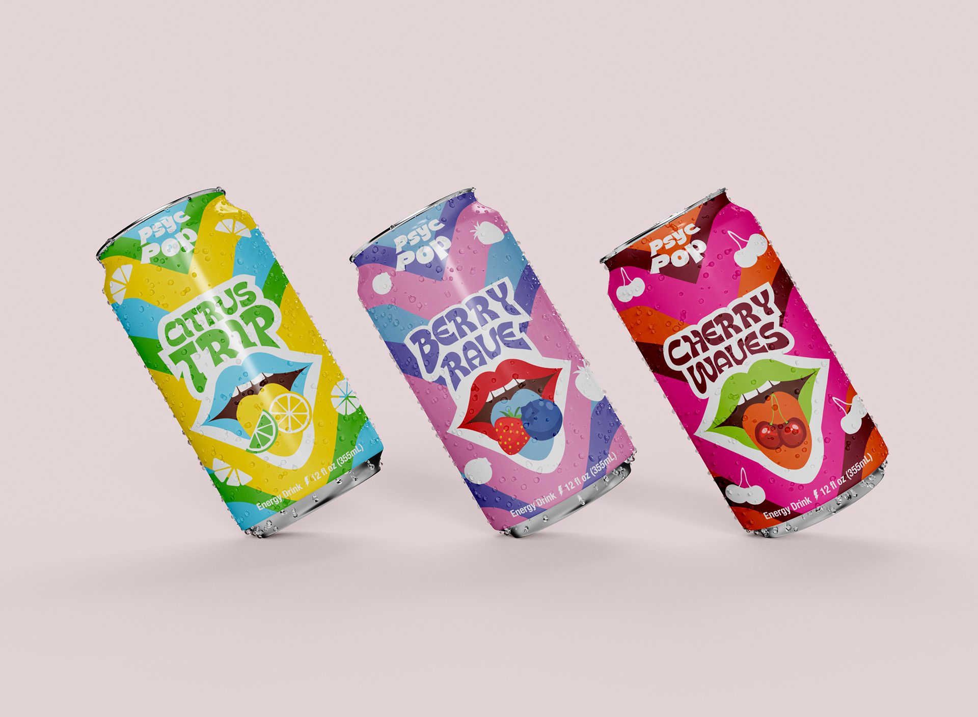 PsycPop is an energy drink inspired by the pop art and psychedelic art movement.
